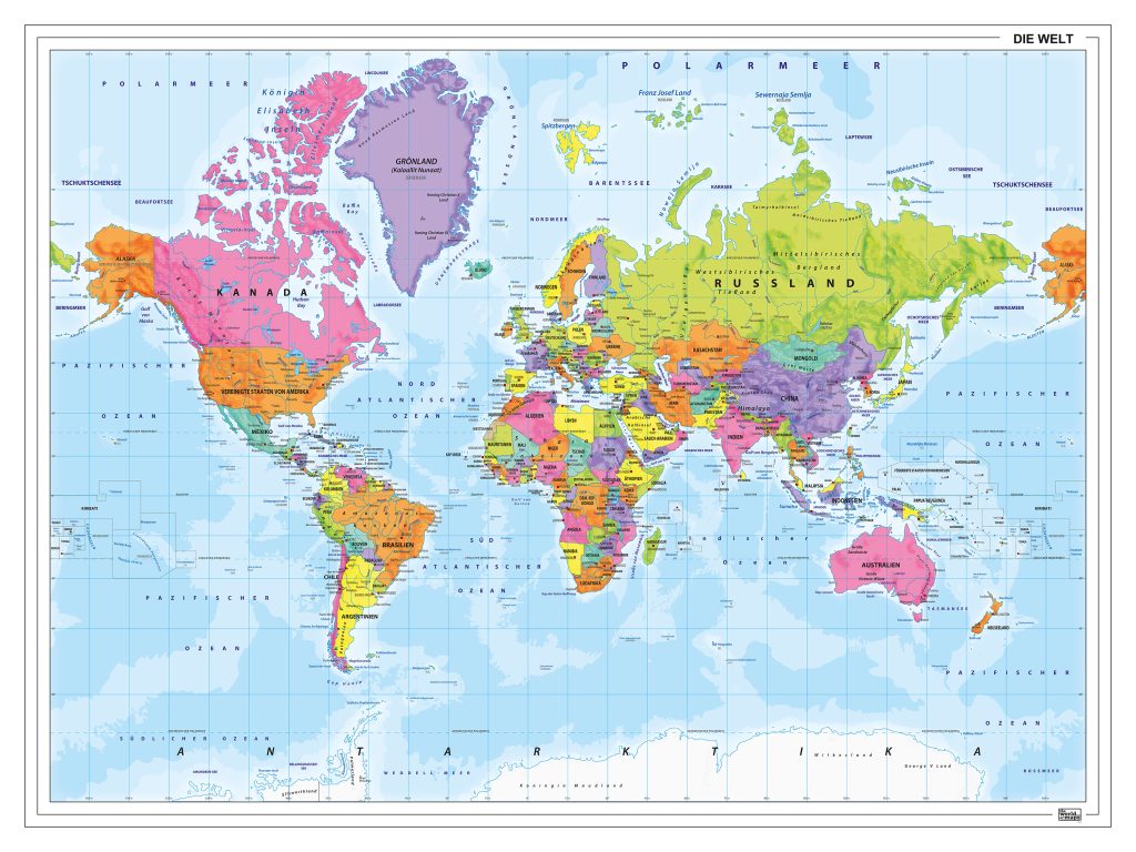Kleurgebruik en maatwerk bepalen de uitstraling en leesbaarheid van staatkundige wereldkaarten.