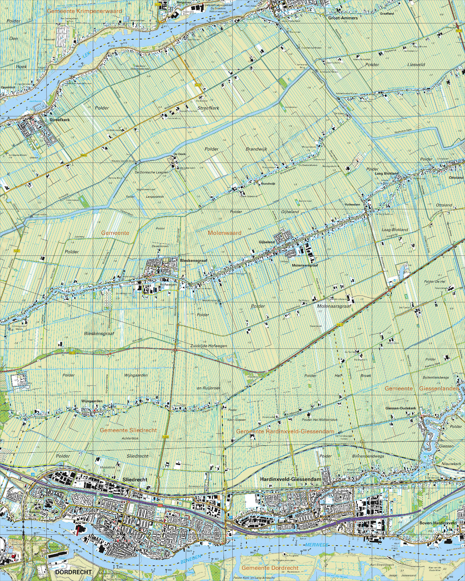 • Toont delen van de gemeenten Giessenlanden, Hardinxveld-Giessendam, Sliedrecht, Dordrecht, Molenwaard en Krimpenerwaard