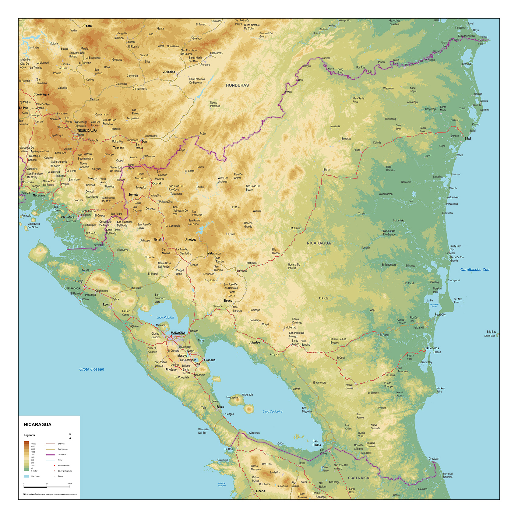 Natuurkundige kaart van Nicaragua