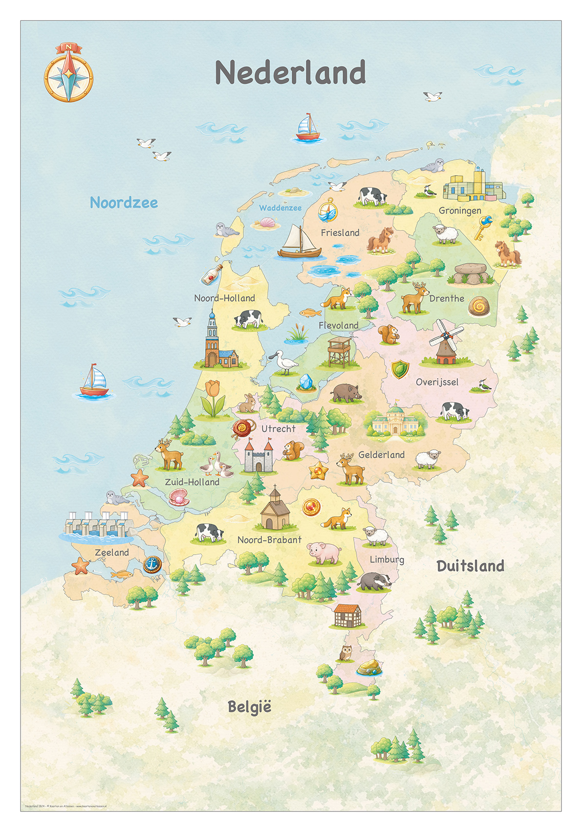 Schoolkaarten van de 12 Nederlandse provincies in de vertrouwde kleurstelling. Daarnaast zijn recent ook de 5 Vlaamse provincies als schoolkaart beschikbaar, vormgegeven in de traditionele stijl zoals vroeger. De kaarten zijn vernieuwd en verbeterd, maar behouden hun herkenbare uitstraling. Ze zijn te koop als gedrukte kaart of in digitale vorm. Beschikbaar in verschillende formaten en uitvoeringen.