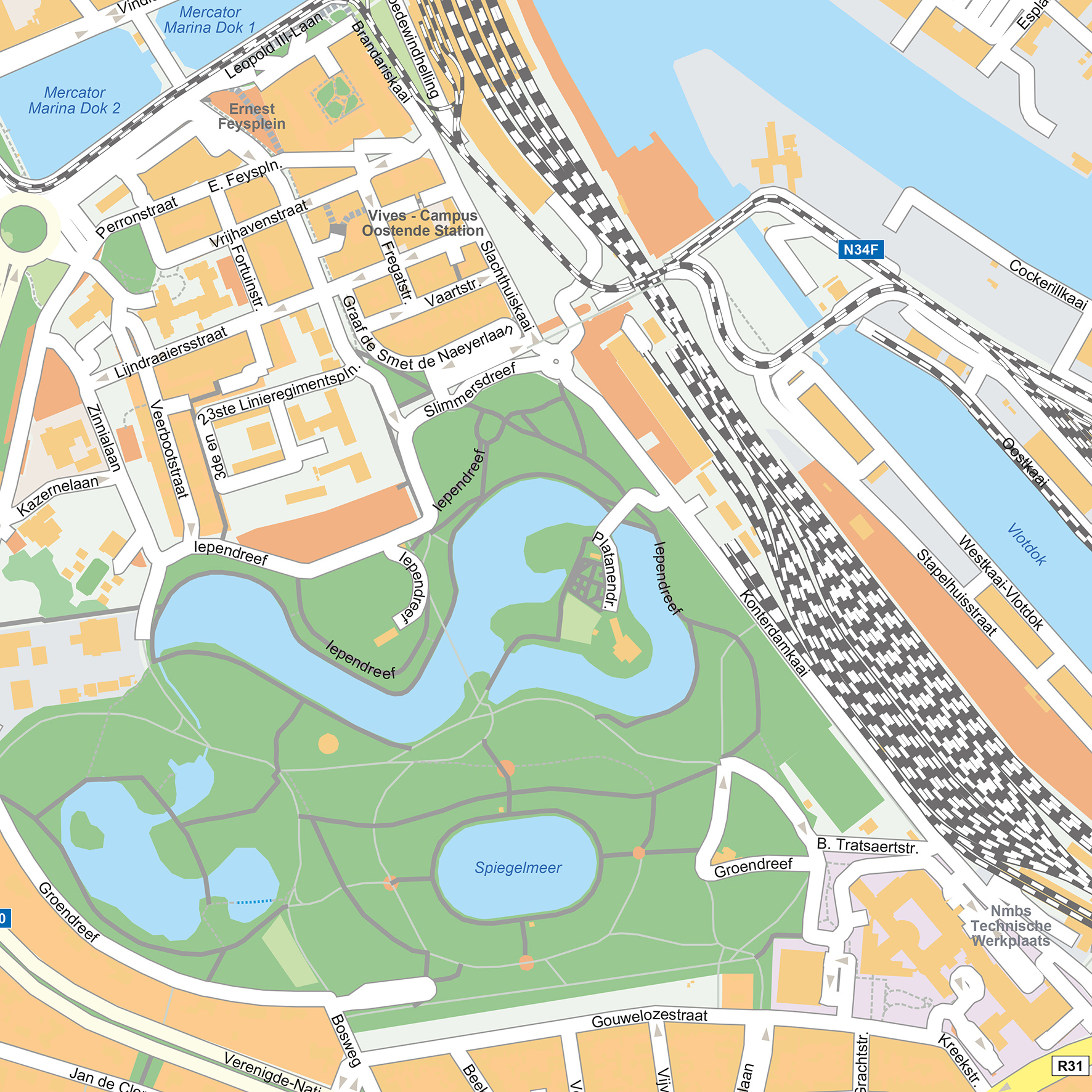 Deze stadsplattegrond van Oostende geeft een helder beeld van de stad met zijn straten, water en groene zones. De kaart is verzorgd vormgegeven en beschikbaar als wandkaart en als digitaal bestand. Deze plattegrond van Oostende laat het centrum en de aangrenzende wijken overzichtelijk zien.