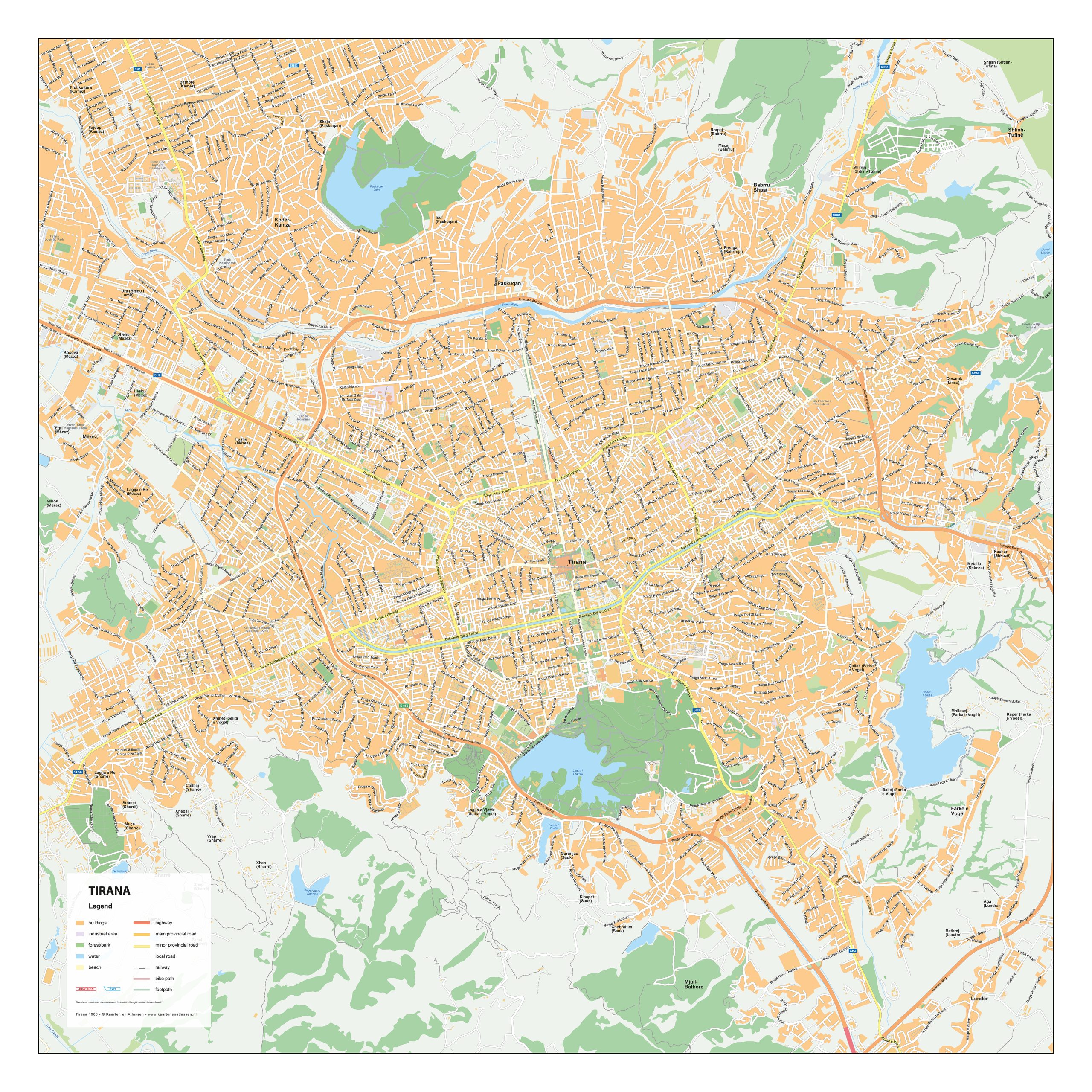 • Mooie plattegrond van de hoofdstad van Albanië.